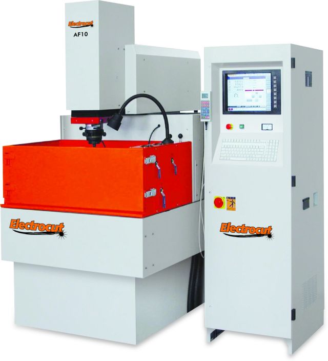 ELETROEROSÃO POR PENETRAÇÃO MARCA ELETROCUT - NOVIC MODELO AF-10 Eletroerosão por Penetração a CNC, com Controle Numérico no Eixo Z e no Movimento Orbital do Cabeçote Especificações Técnicas: Dimensões da mesa mm 600x400 Carga máxima sobre a mesa kg 1.000 Cursos: X – Y - Z mm 380x250x250 Resolução ( X-Y-Z ) mm 0,001 Distância Porta Eletrodo-Mesa ( min./max.) mm 250 - 500 Dimensão do tanque (bandeja de trabalho) mm 1.050x620x380 Dimensões máximas da peça mm 800x500x320 Peso máximo do eletrodo kg 70 Corrente máxima de erosão A 64 Remoção máxima de material(cobre-aço) mm³/min 380 Mínimo desgaste volumétrico do eletrodo 0,3% Melhor rugosidade - Ra microns 0,3 Tecnologia de Erosão Standard Cobre/Grafite~Aço Cobre/Tungstenio~MetalDuro Características Elétricas Volts 380±10% Potencia requerida KVA 10 Capacidade da Unidade de Dielétrico L 450 Filtro de papel pç 02